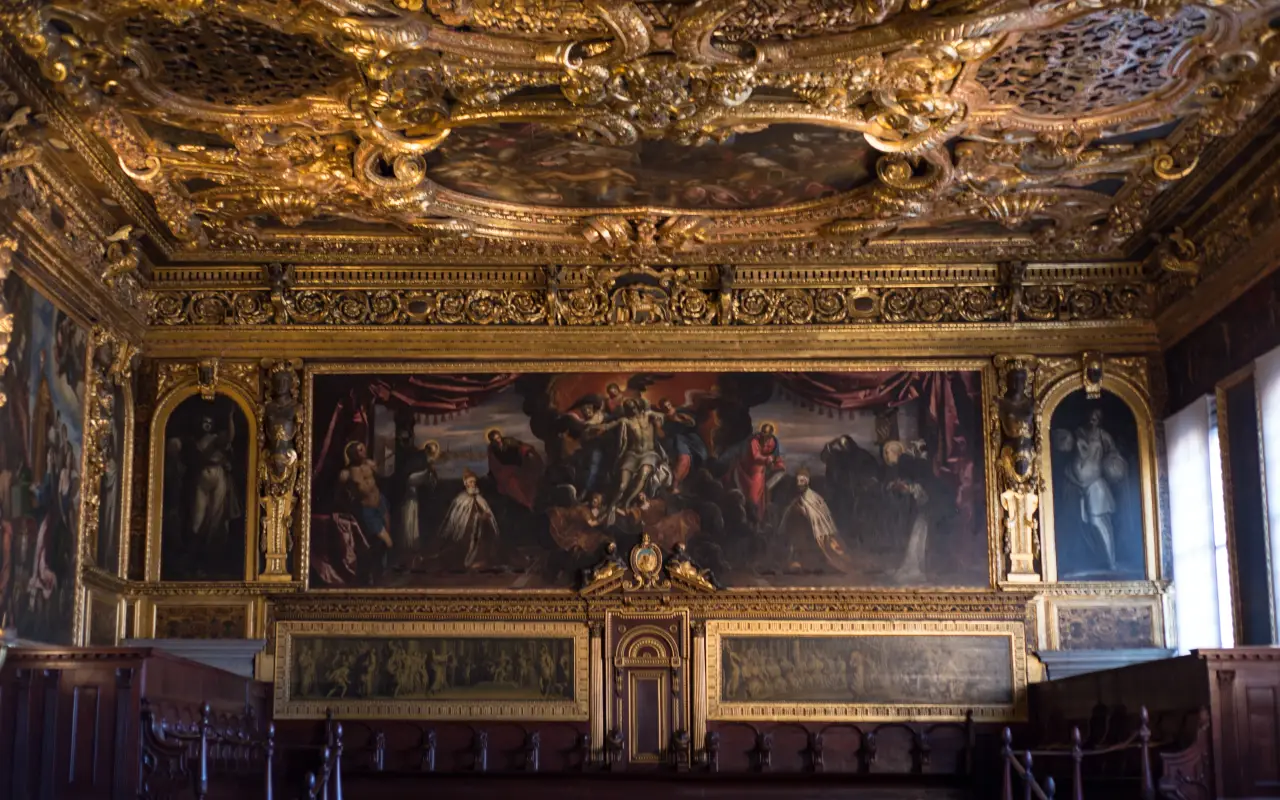 Inside, you'll walk through lavish halls with gilded ceilings, climb grand staircases, and view works by Tintoretto and Veronese. The famous Bridge of Sighs connects the palace to the prisons, offering a dramatic contrast to the opulence within.